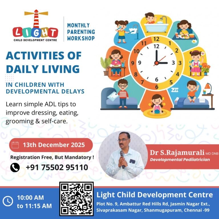 In this session, Dr.S. Rajamurali will guide parents on how to support their child in learning everyday routines through structured steps, patience, and meaningful reinforcement.